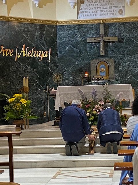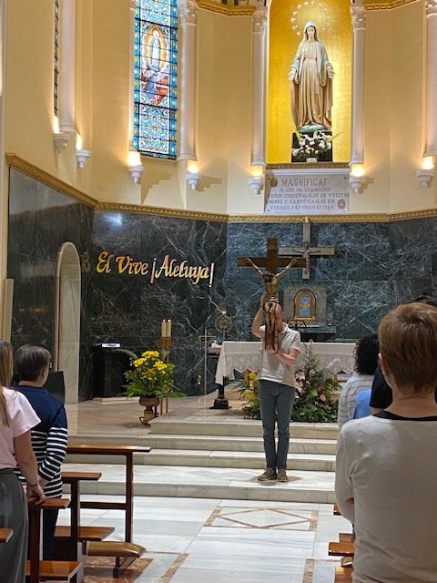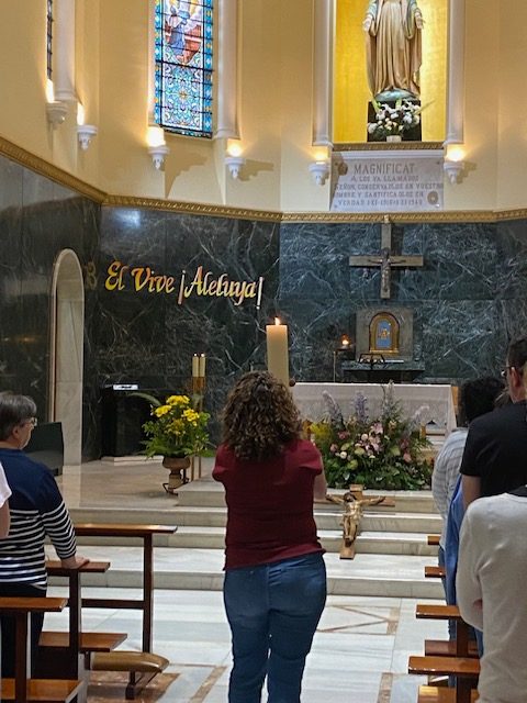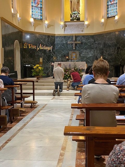 La tarde se comenzó en la capilla con una parte muy importante en esta labor de evangelización, la oración. Ante la cruz, el cirio pascual y el Santísimo, cada participante vivió un momento personal de encuentro con Dios, en un ambiente de recogimiento que puso el acento en el núcleo del mensaje cristiano: el amor de un Dios vivo y resucitado que se ofrece a todos.